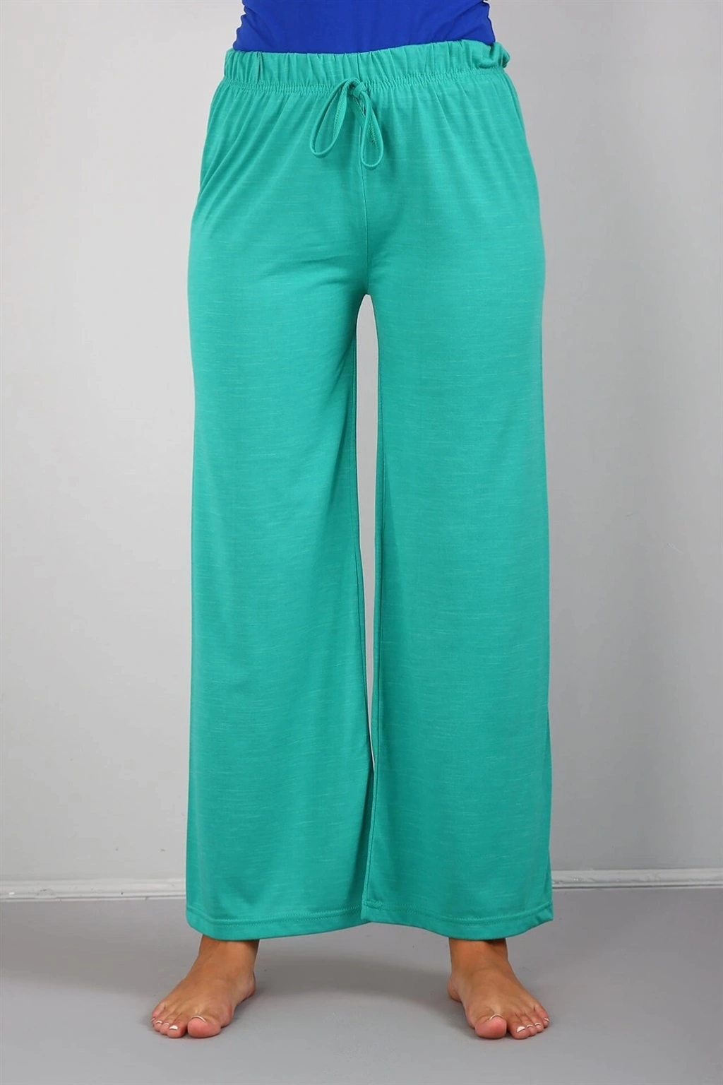Çamaşır Kenti markasının tasarladığı Bayan Penye Bol Paça Pantolon Yeşil, şıklık ve rahatlığı bir arada sunar.
