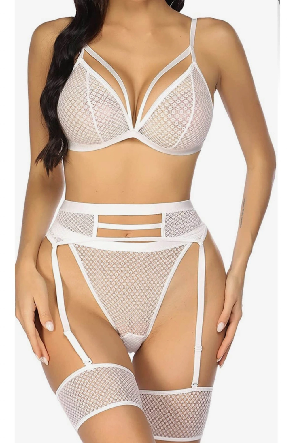 Beyaz Fantezi File Jartiyer Takım - 1038