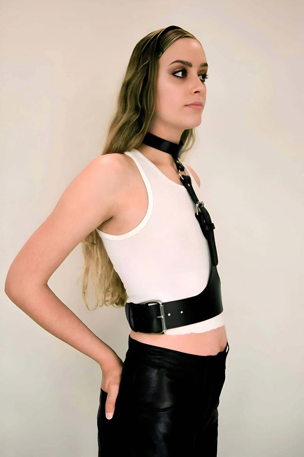 Boyun Bağlantılı Korse Kemer Harness, Kadın Deri Bel Kemeri - Apft1297