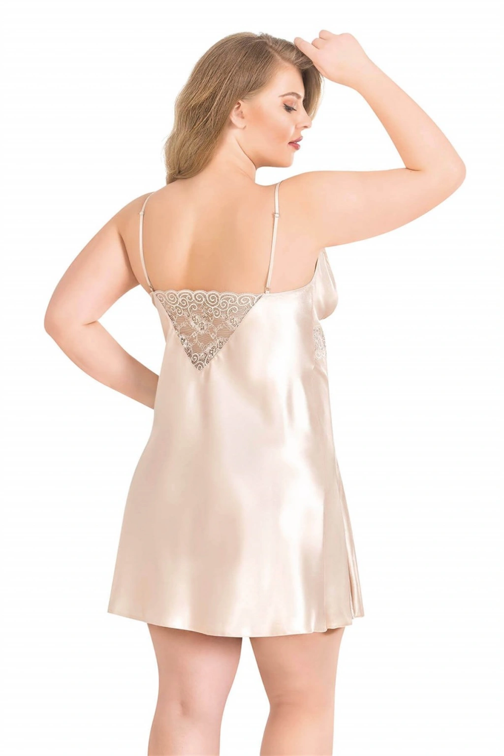 Büyük Beden Fildişi Kısa Saten Gecelik 2050
