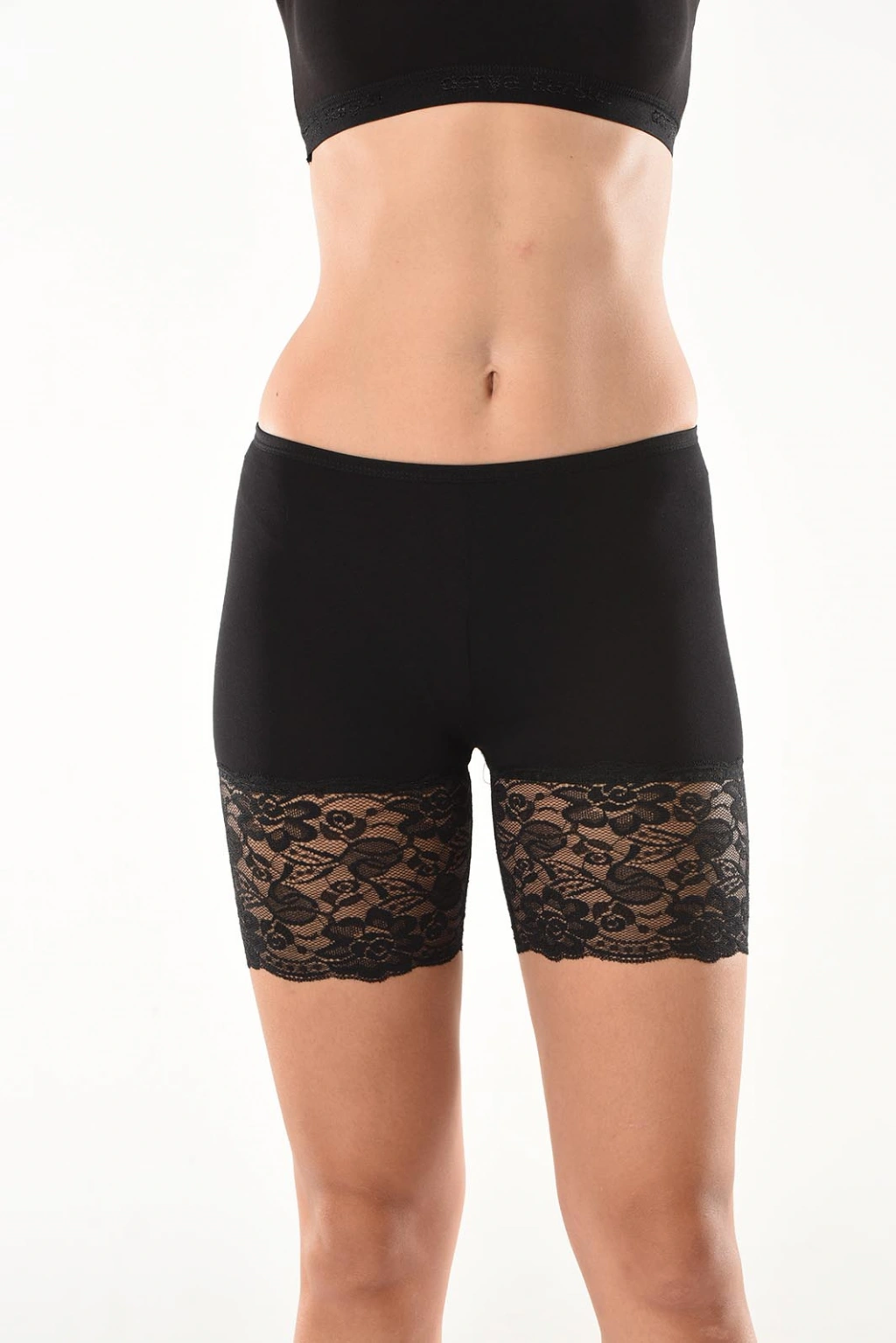 Paça kısımlarından dantelli, basen kısımlarından vücudu tam saran yeni sezon kısa şort tayt modelidir.