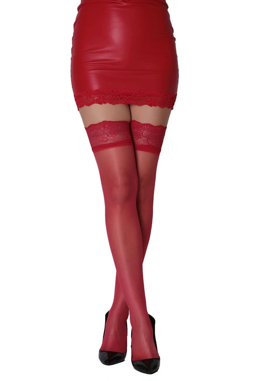 Kadın Kırmızı File Silikonlu Jartiyer Çorabı