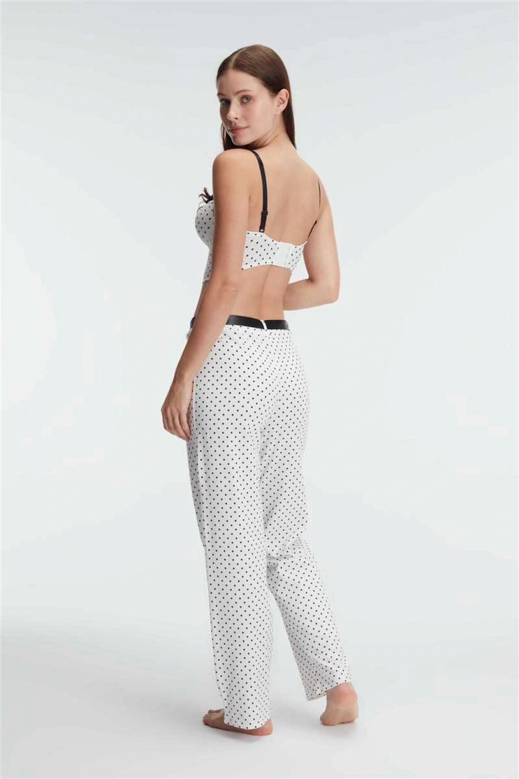 Kısa Ad:Fantezi Bralet Sütyen Pamuklu Puantiye Desenli Desteksiz Dantel Detaylı Pijama Takımı 4125