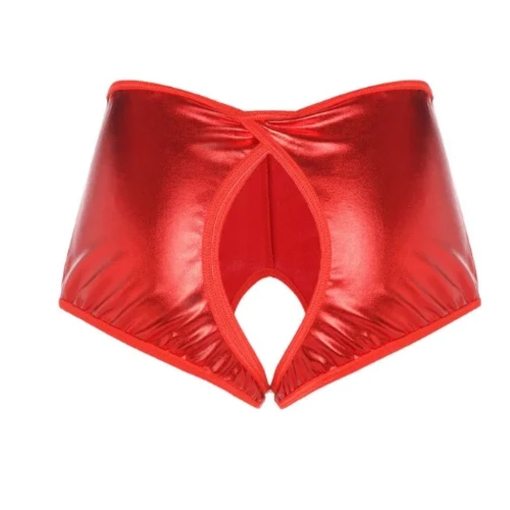 Fantezi Kırmızı Özel Bölgeleri Açık Parlak Külot
