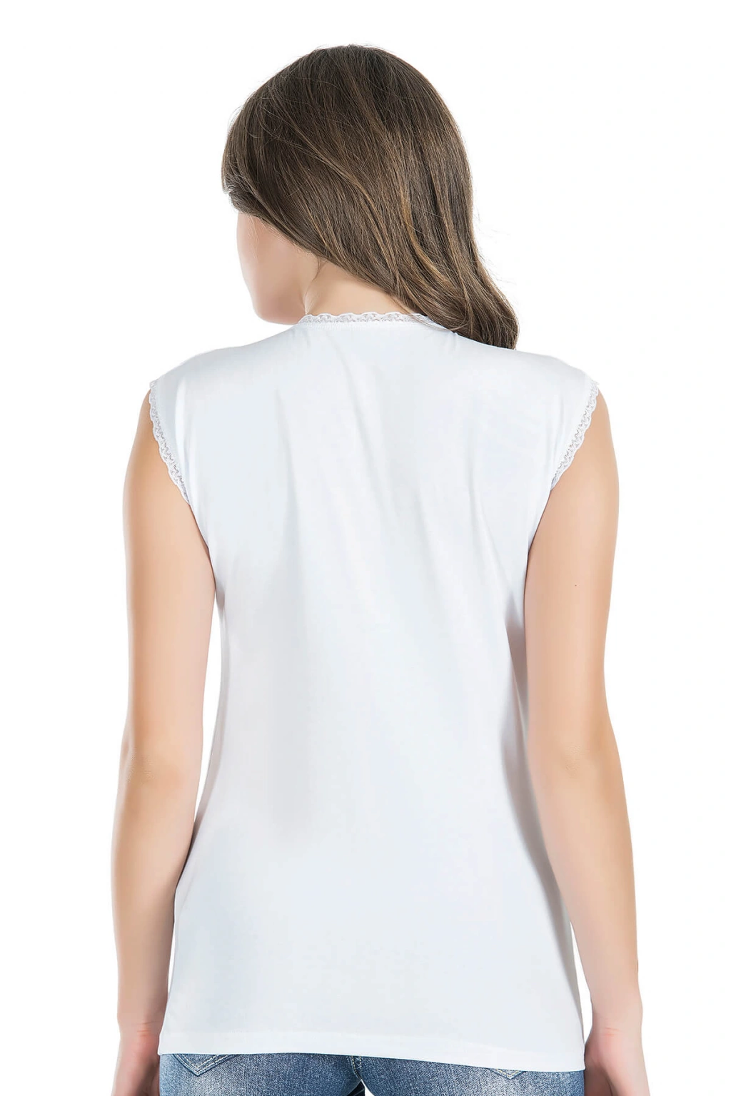 Sıfır kol, bisiklet yaka ve dantelli yeni sezon fiyonk aksesuarlı kadın atlet modelidir.