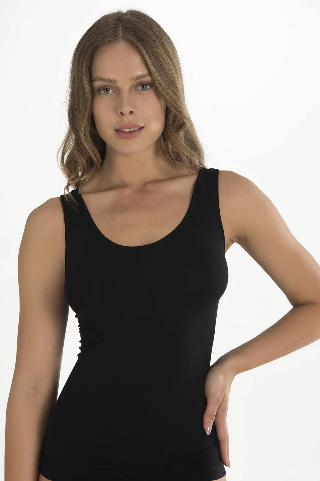 Geniş Askılı Siyah Ribana Atlet