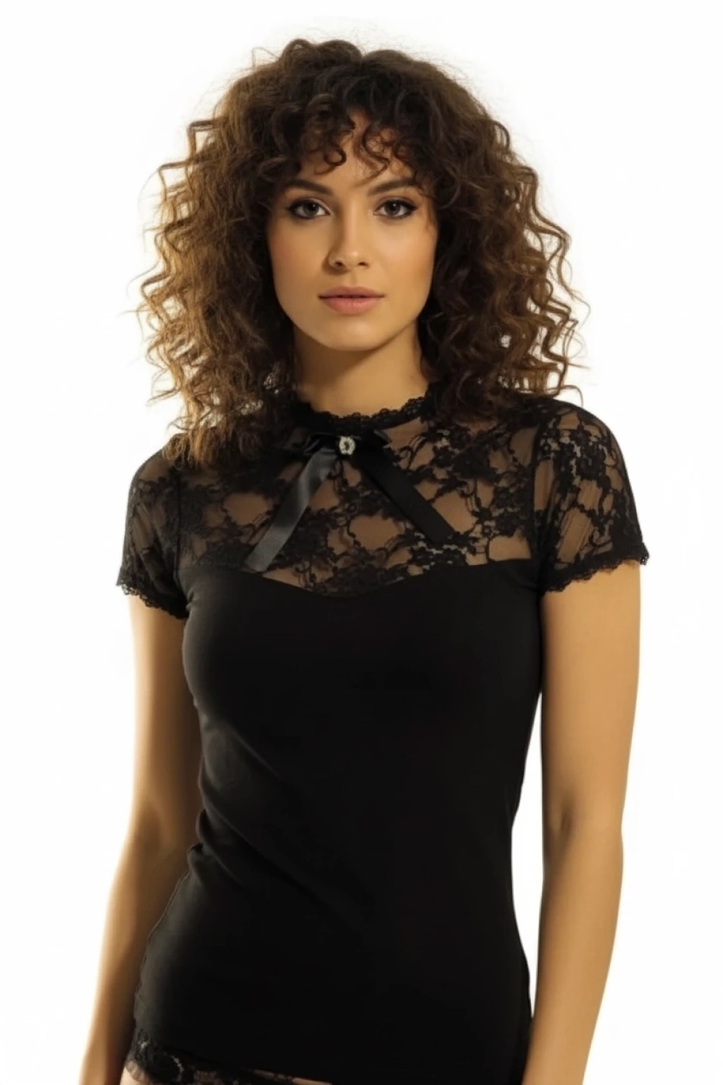Giyim Berrak Dantelli Yarım Kollu Kadın Bluz Elestan