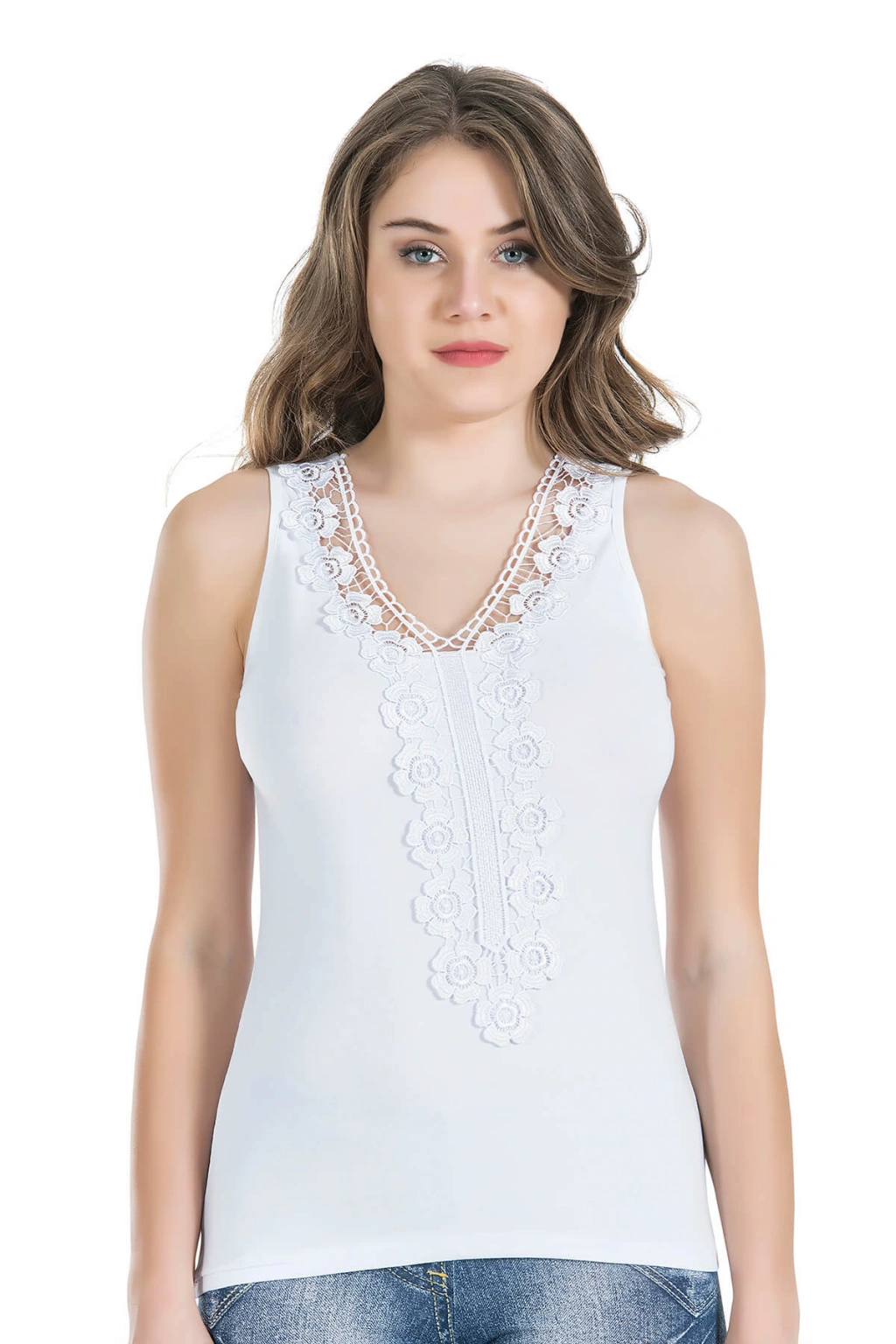 Günlük kullanıma uygun yeni sezon sıfır kol ve güpürlü kadın atlet modelidir. Tekstil kalitesi ve güvencesiyle satışa sunulmaktadır.