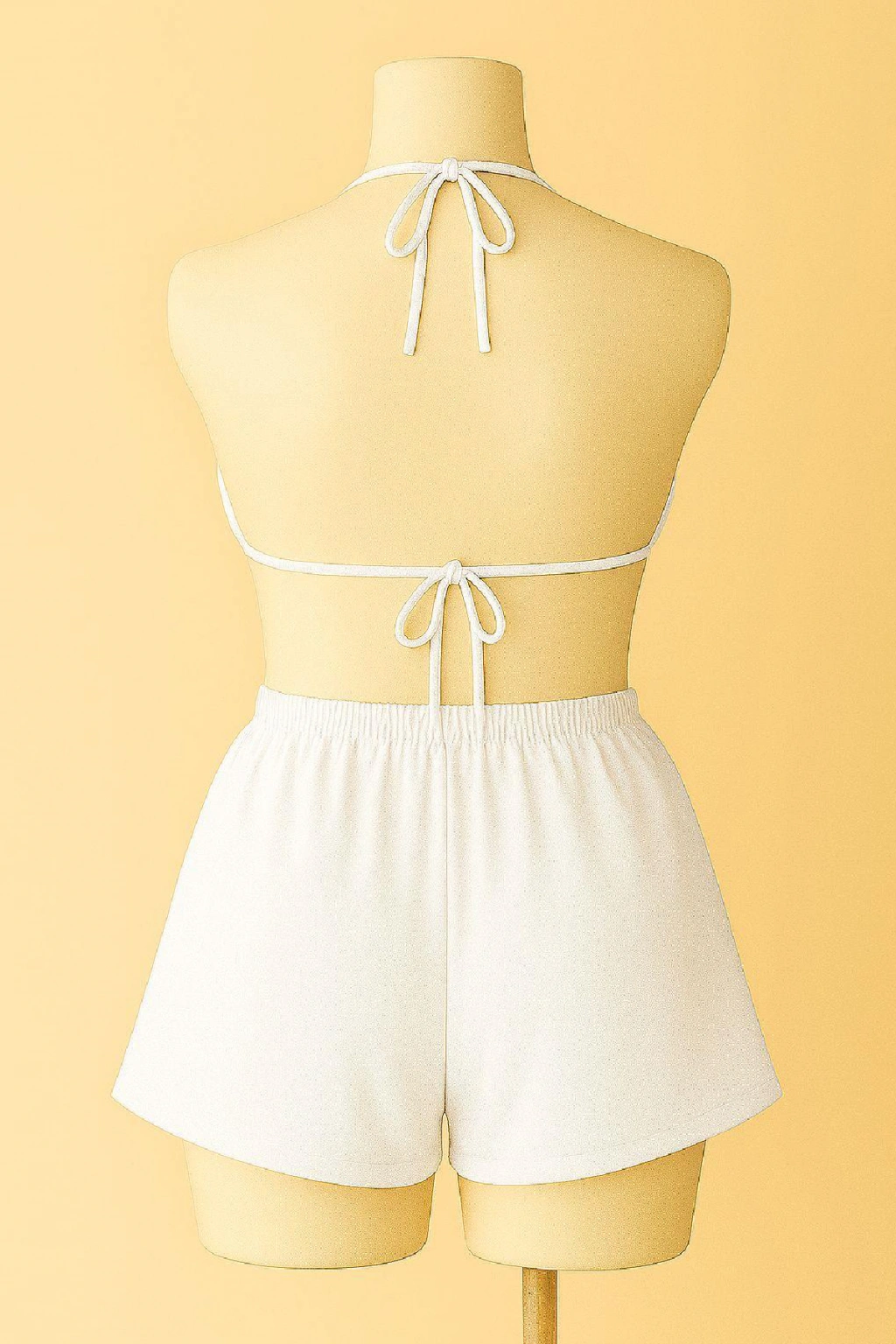 Kadın Beyaz lu Belden Ve Boyundan Bağlamalı Bikini Takımı