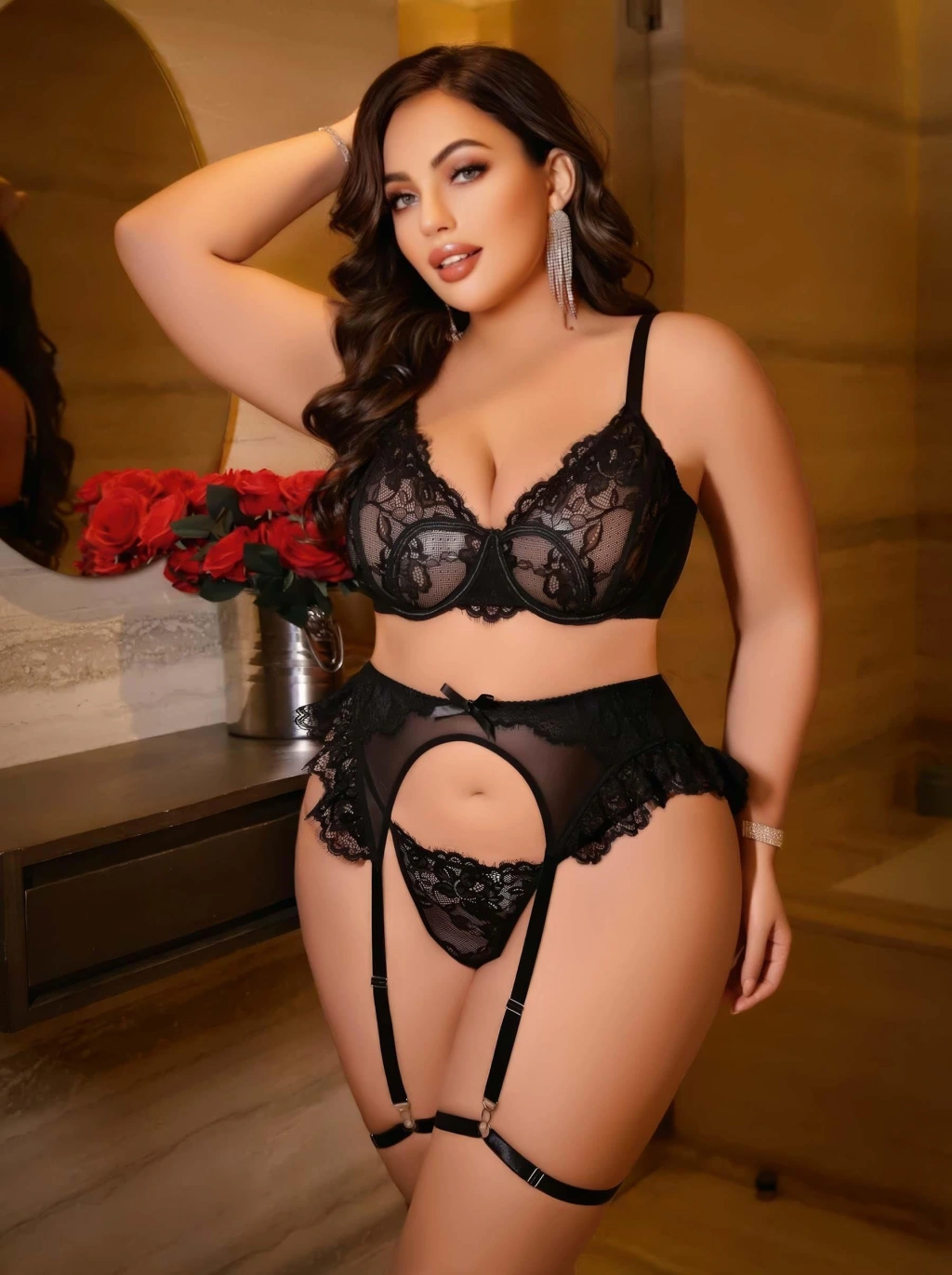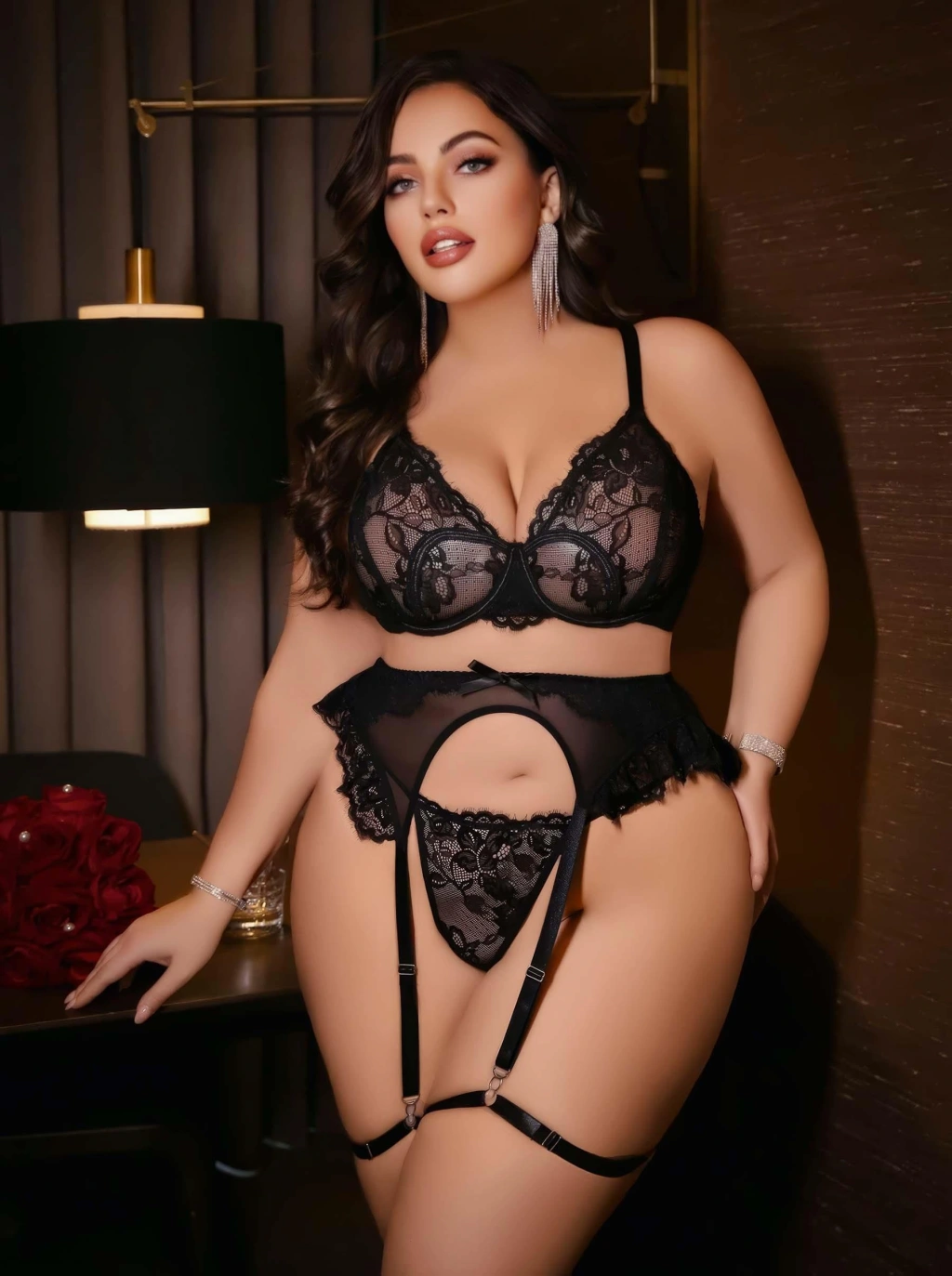 Kadın Büyük Beden Dantel Detaylı Fantezi Jartiyer Takımı 8010