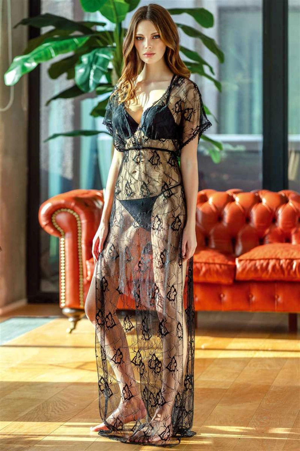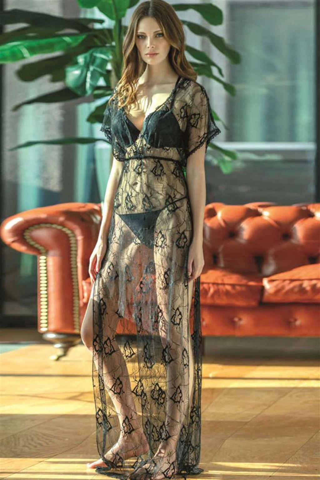 Kısa Ad:Kadın Dantelli Gecelik Balenli Destekli Dolgulu Önden Açılan Sütyen ve String 3'lü Takım (4741)