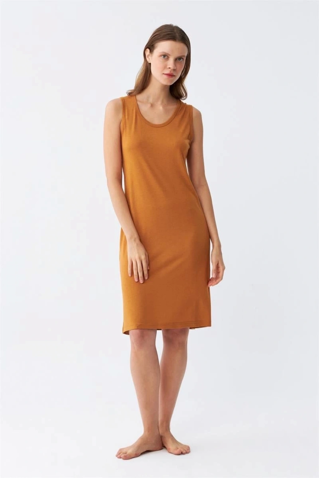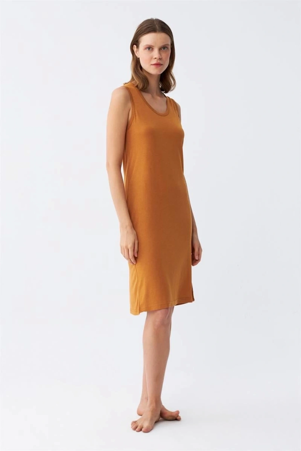 Çamaşır Kenti markasının şık ve rahat tasarımına sahip Kadın Kalın Askılı Penye Gecelik Hardal, günün yorgunluğunu üzerinizden atmanızı sağlar.