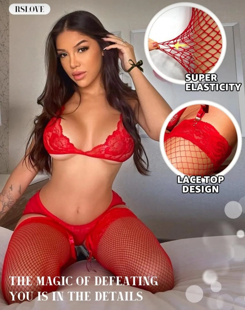 Kadın Kırmızı File Silikonlu Jartiyer Çorabı