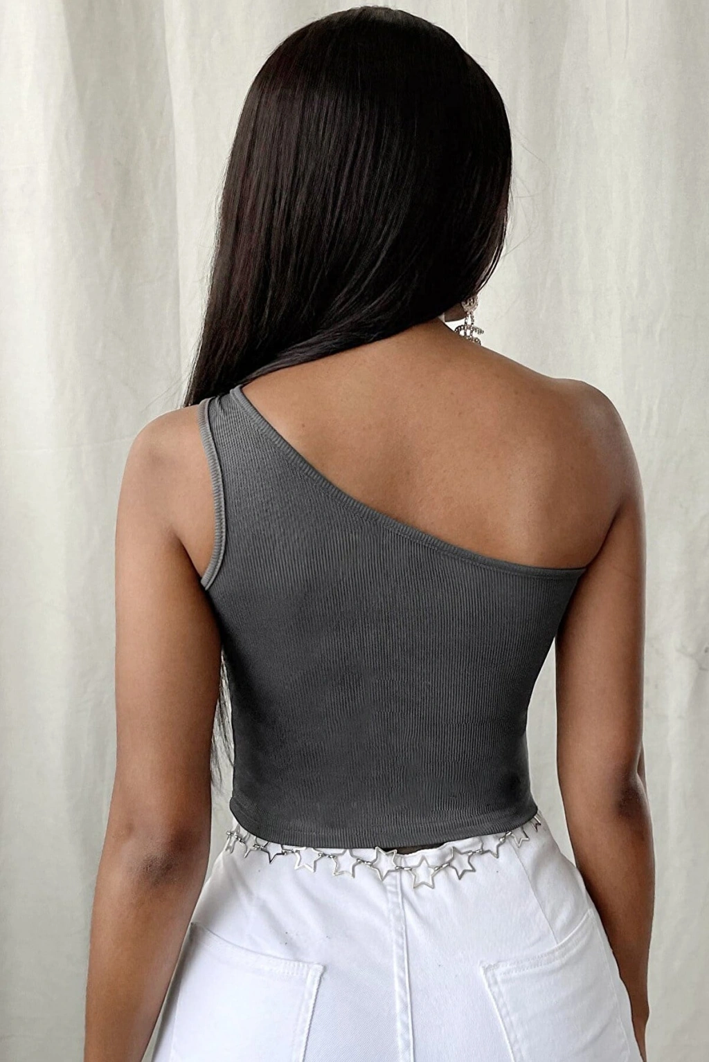 Kadın Koyu Gri Tek Omuz Crop Büstiyer