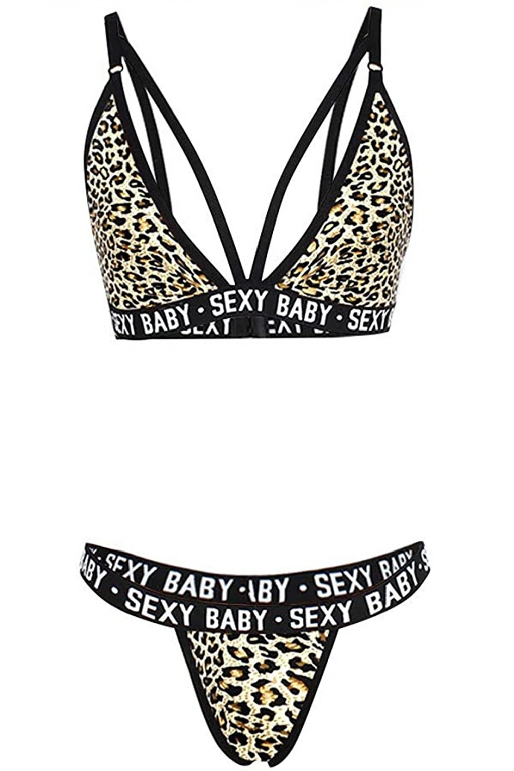 Kadın Leopar Desenli Yazı Detaylı Ipli Sütyen Takımı