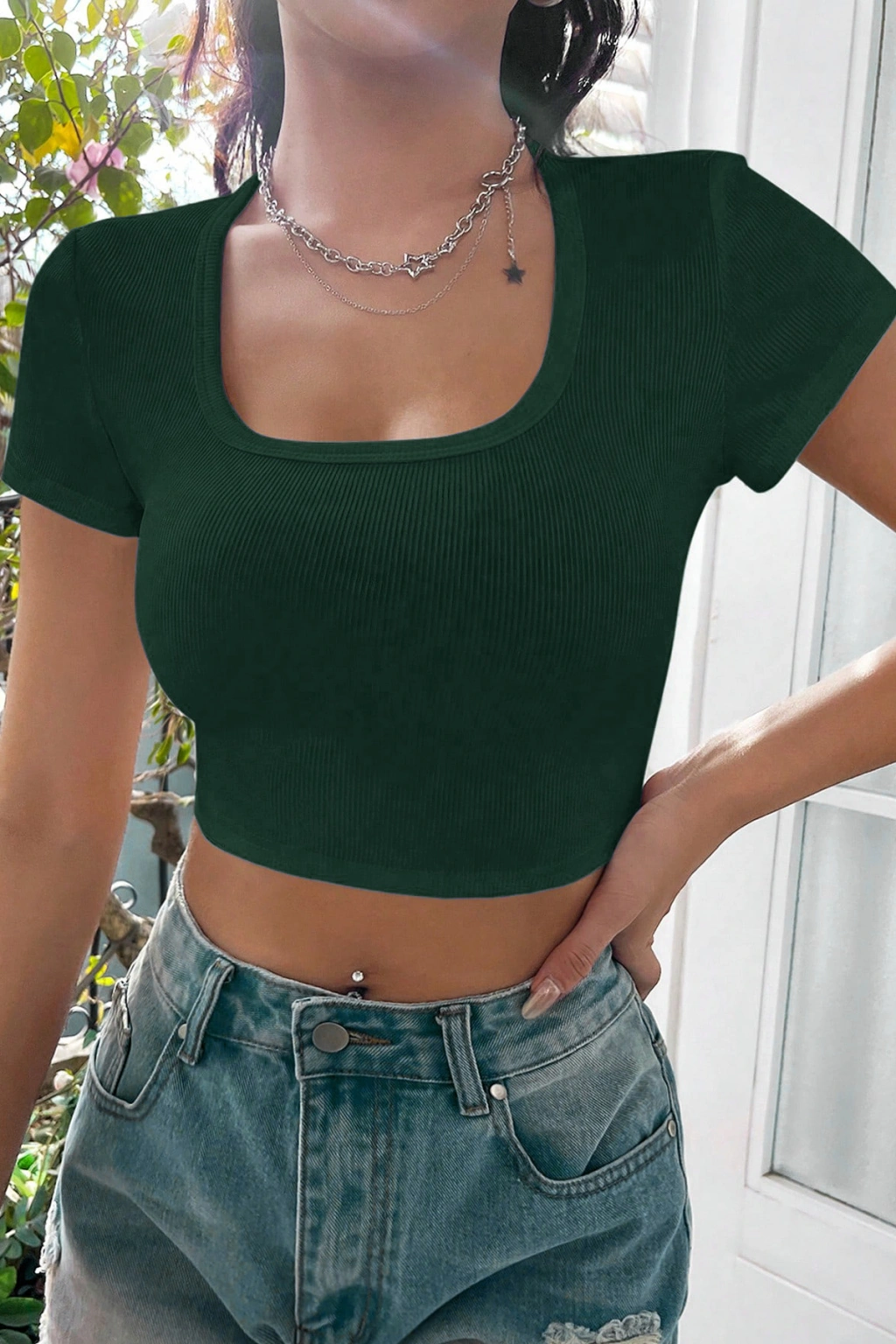Düz Yaka Kaşkorse Crop Top