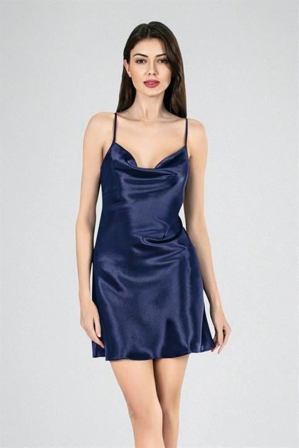 Kısa Gecelik Degaje Lacivert 7740