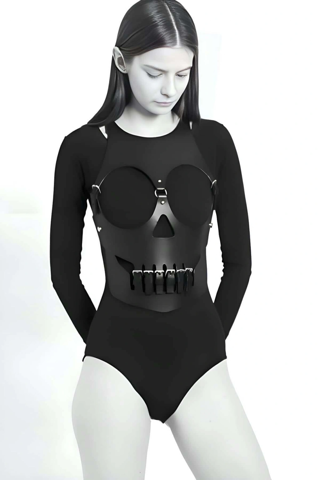 • Kurukafa Tasarımlı Giysi Üzeri Giyilebilir Fantazi Seksi Deri Body Harness - Brf1153