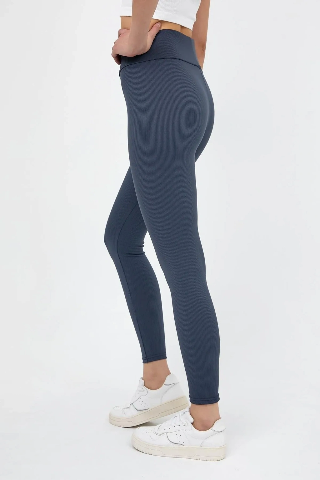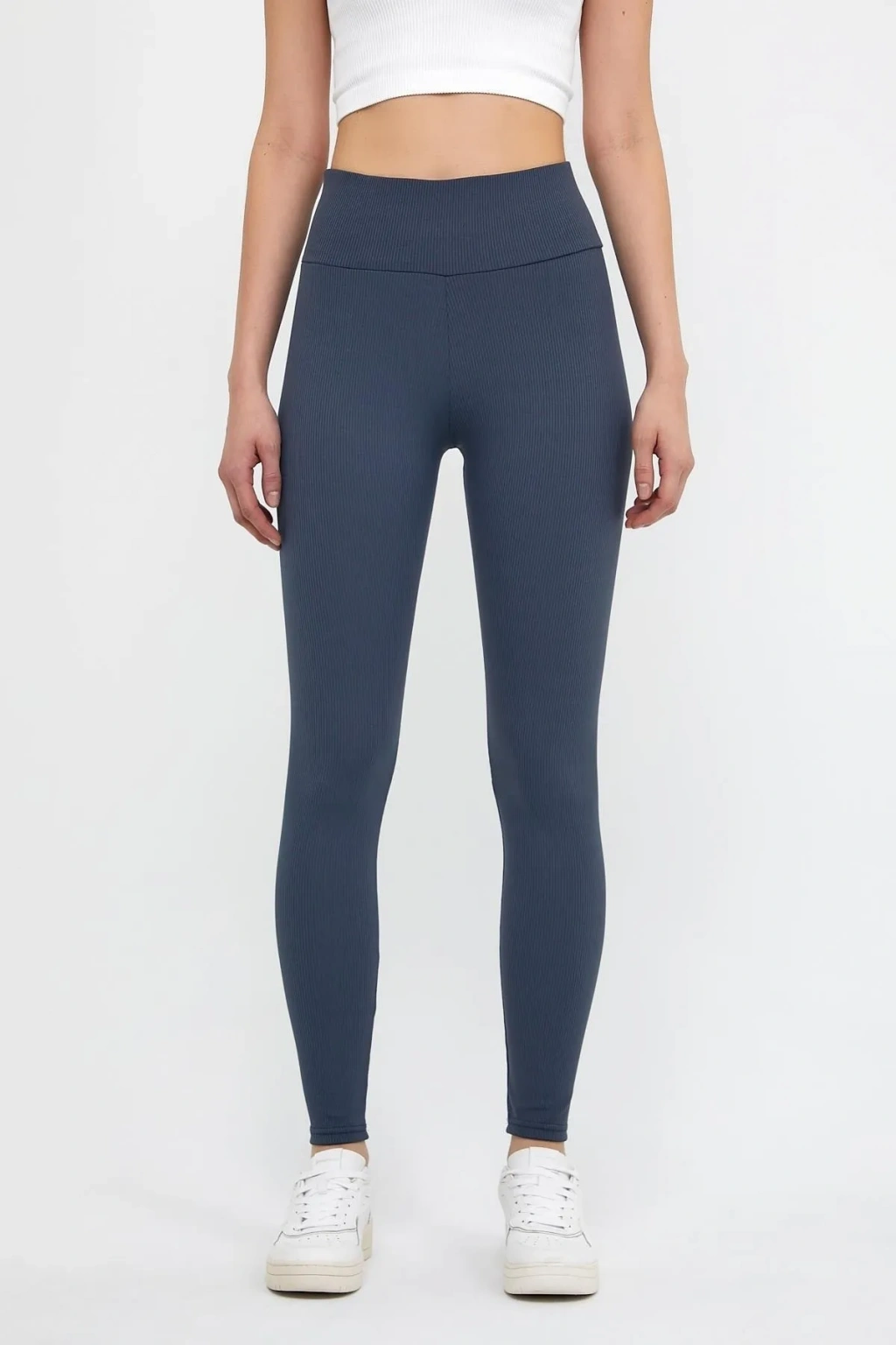 Lacivert Yüksek Bel Fitilli Tayt 0608