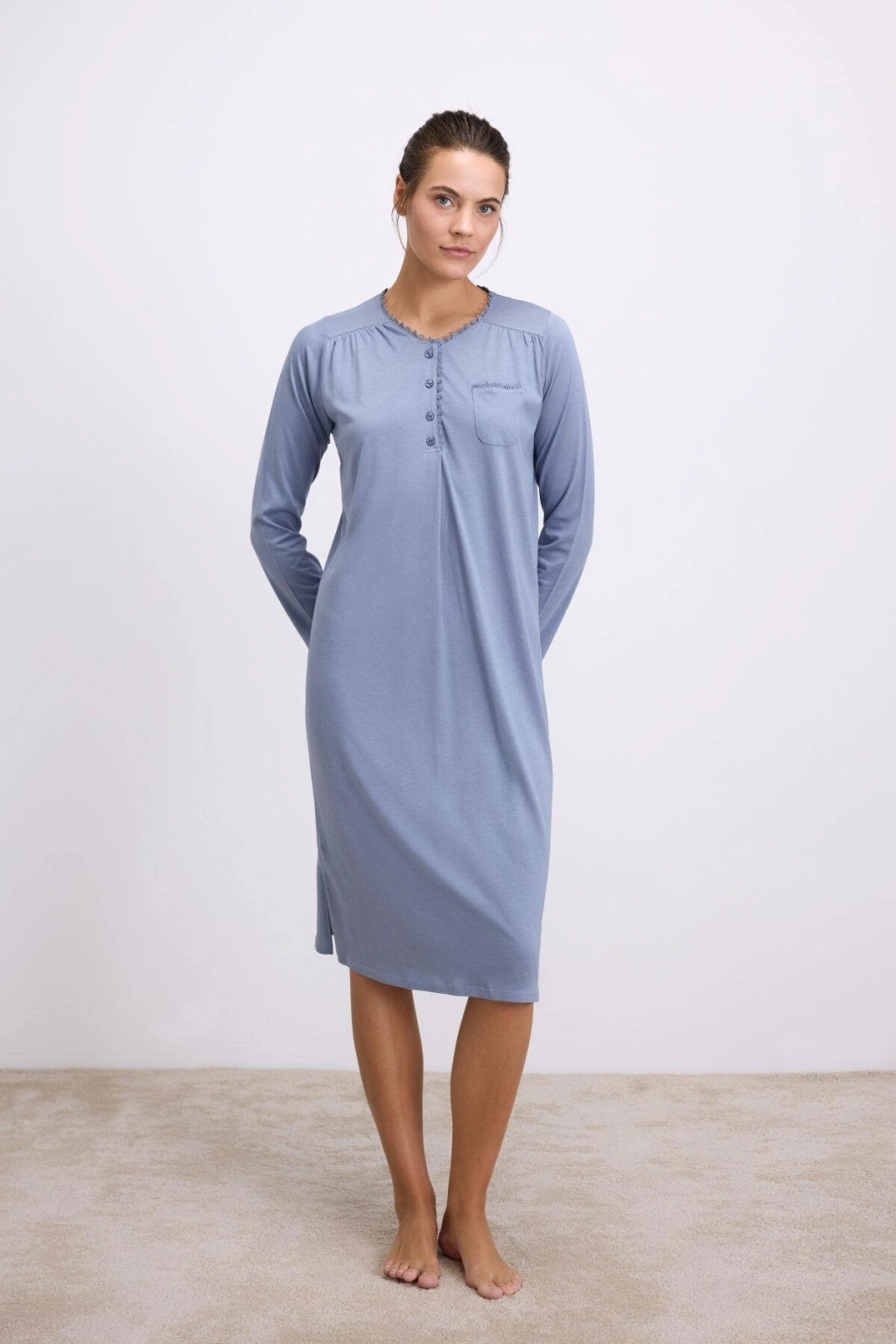Fil Dişi Modal Uzun Kollu Düğmeli Gecelik