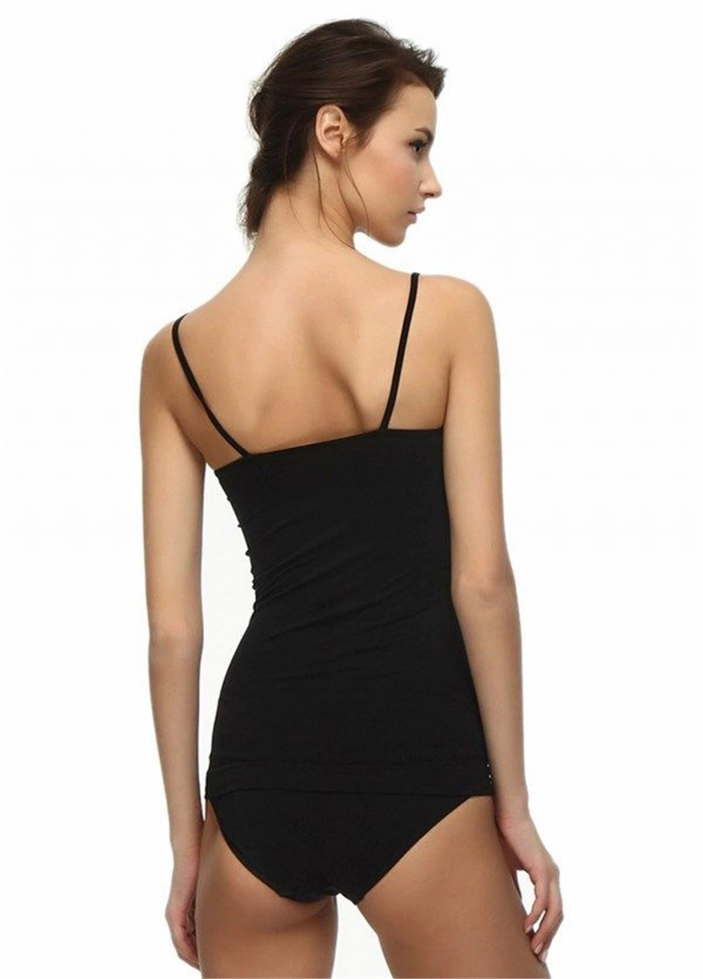 Kadın Siyah Normal Kalıp Dantel Detalı Ince Askılı Oyuk Yaka Atlet