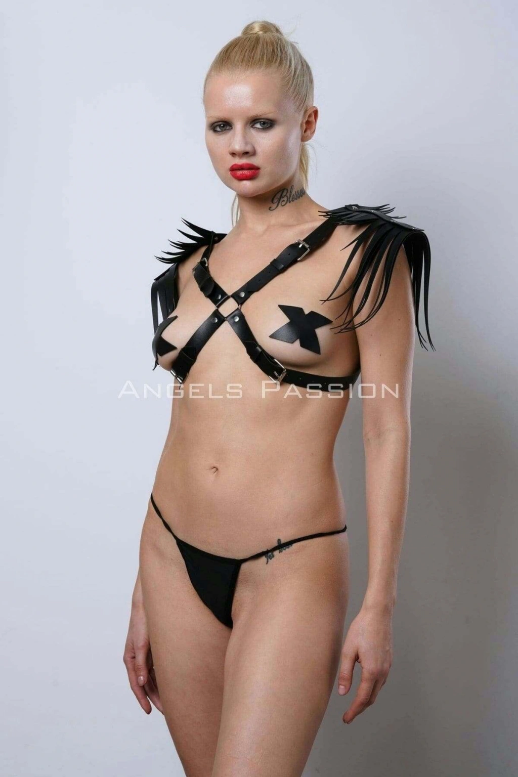 Omuzdan Püsküllü Göğüs Harness, Deri Püsküllü Omuz Harness - Brf1240
