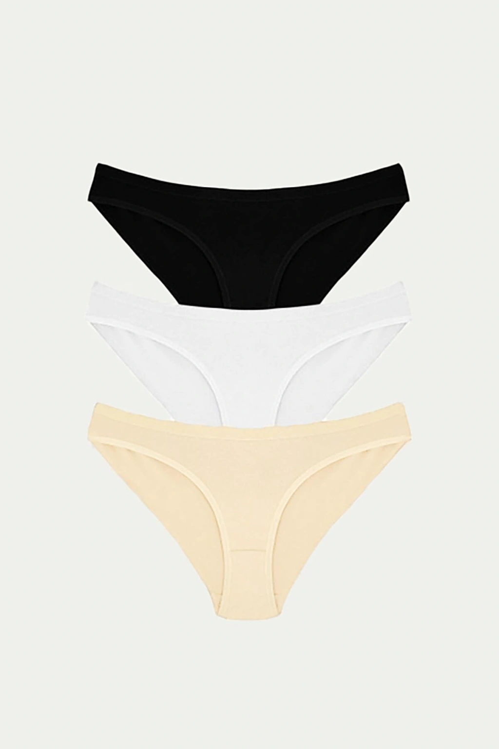 Pamuklu Siyah Beyaz Ten Rengi 3'lü Külot