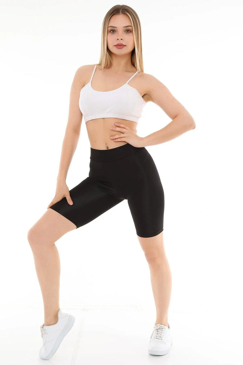 Yeni sezon sporcu bayanların tercihi parlak biker tayt modelidir. Esnekliği ve vücudu tam sarmasıyla şık bir görünüm kazandırır.