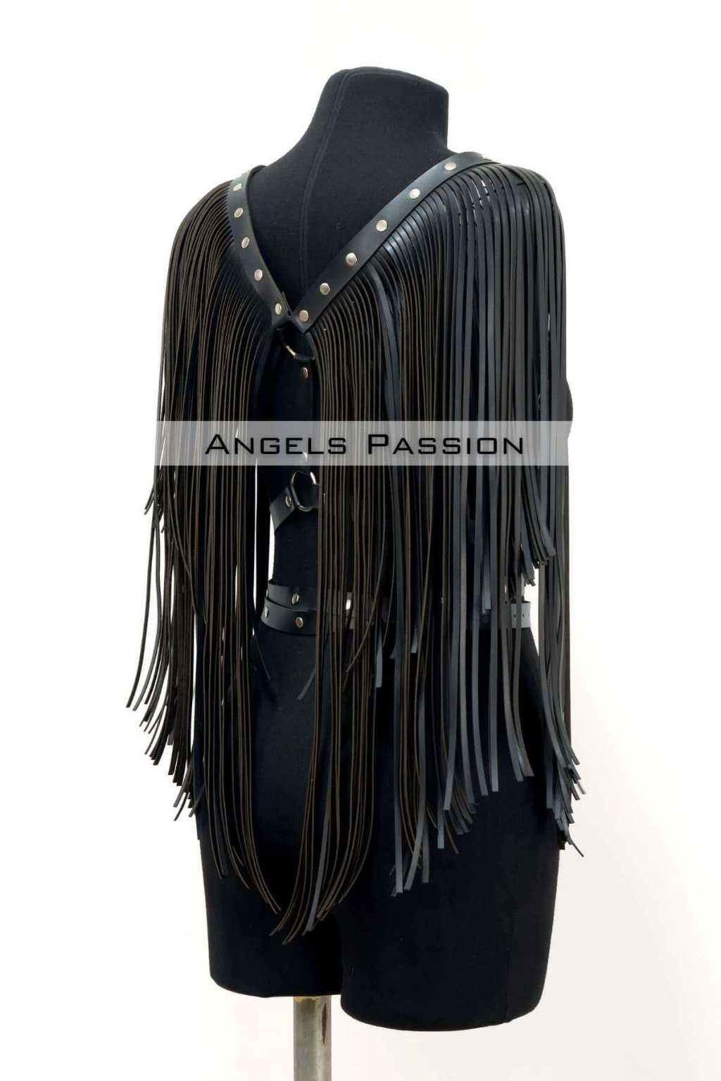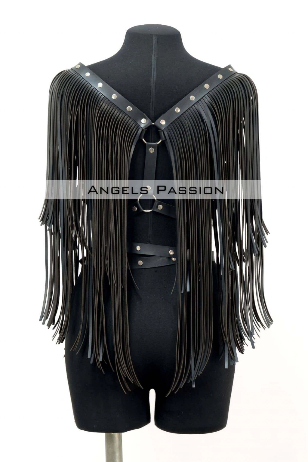 Püskül Detaylı Deri Göğüs Harness, Deri Harness Püsküllü Ceket - Brf999