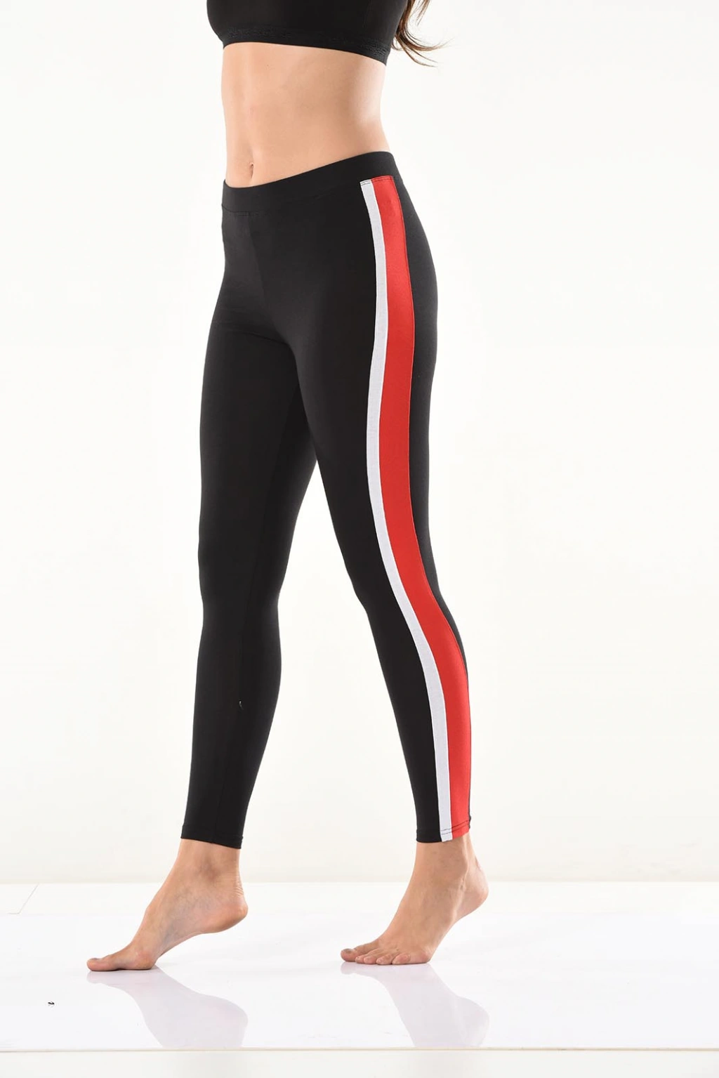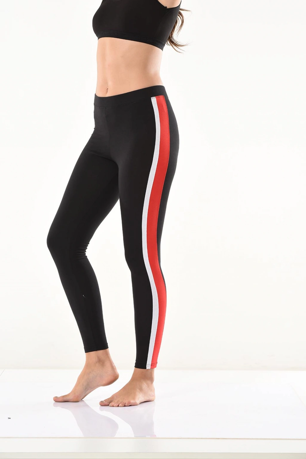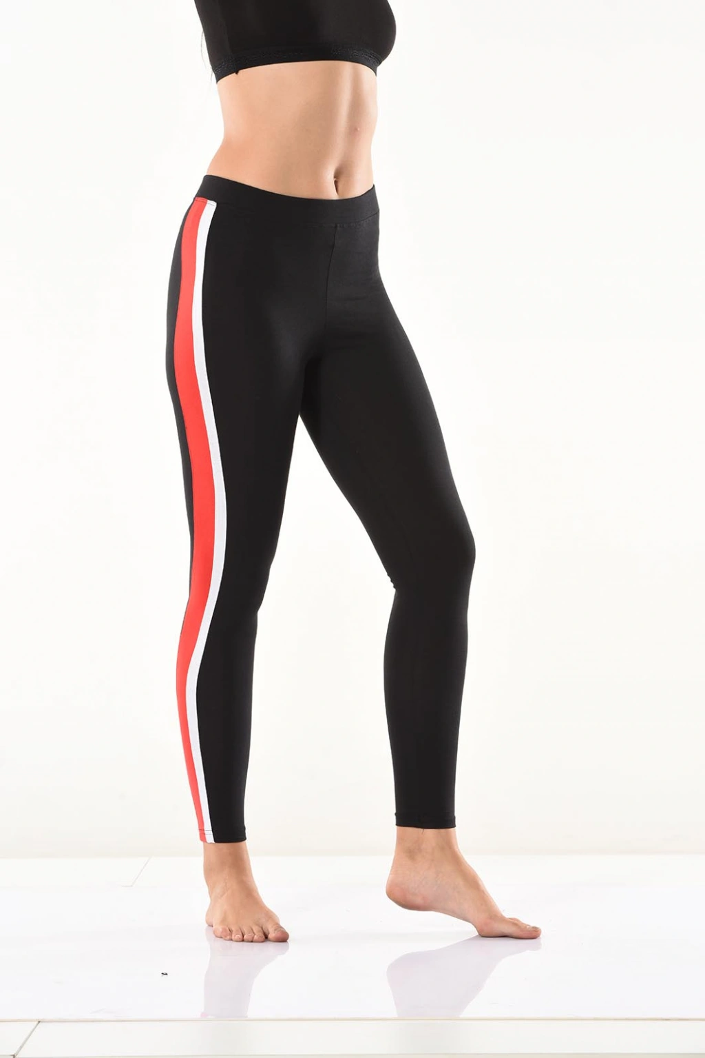 Yeni sezon şerit detaylarıyla şık bir görünüm kazandıran kadın tayt modelidir.
