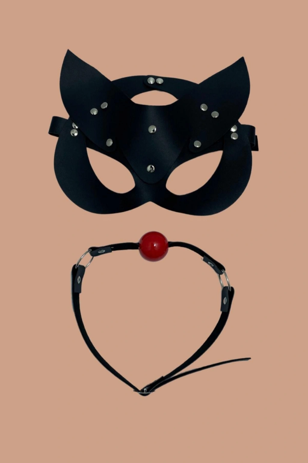 Siyah Deri Maske Ve Ağız Topu Herness Aksesuar
