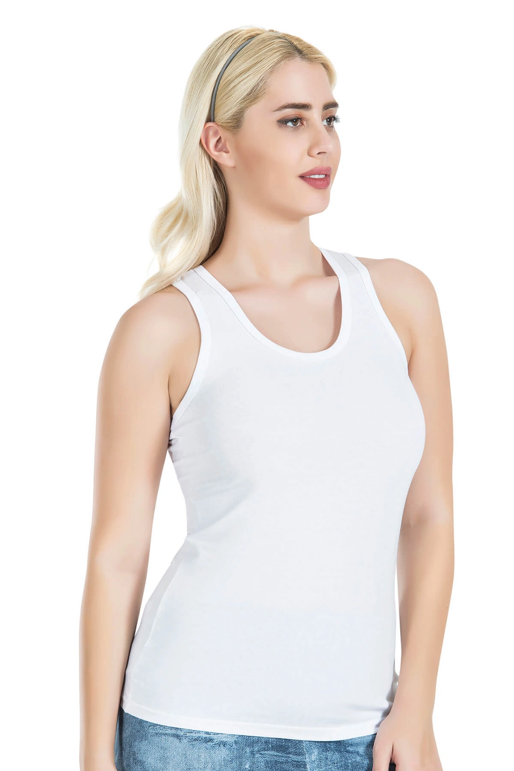 Geniş askılı sırtı çapraz yeni sezon sporcu kadın atlet modelidir. %92 Pamuk - %8 Likra kumaştan üretilmektedir.