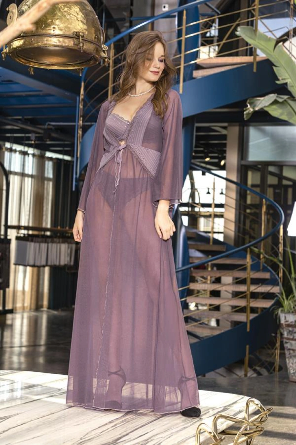 Transparan Uzun Sabahlık Mor (brf11460)
