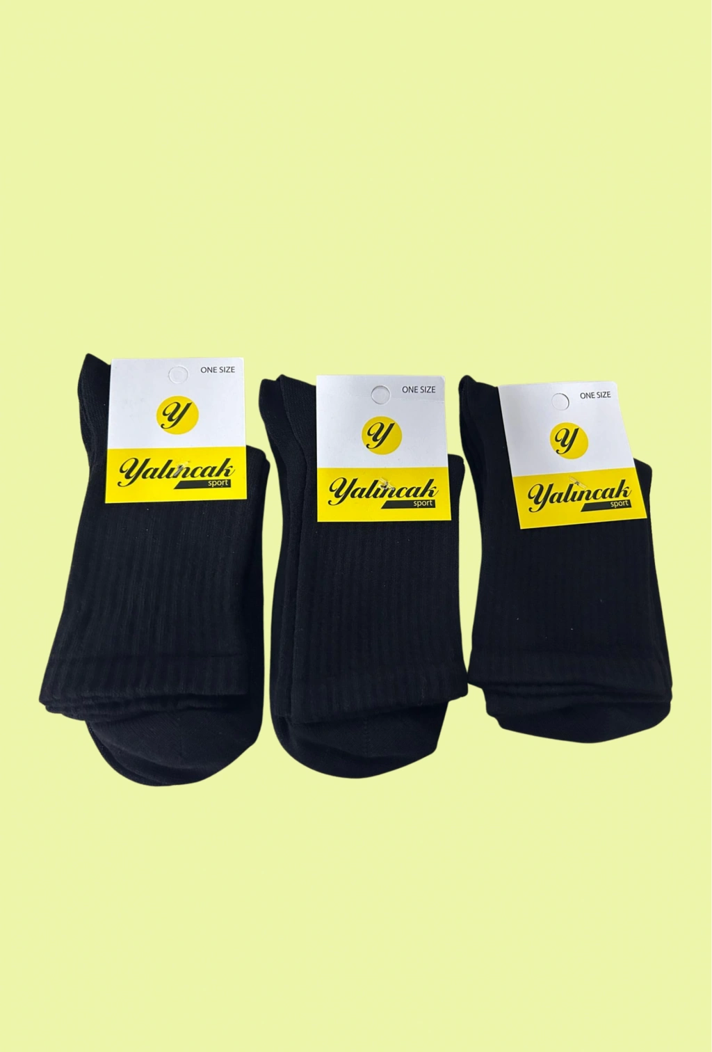 Yalıncak Yarım Konç Kolej Çorap Siyah Renk 12 Adet Desensiz Model